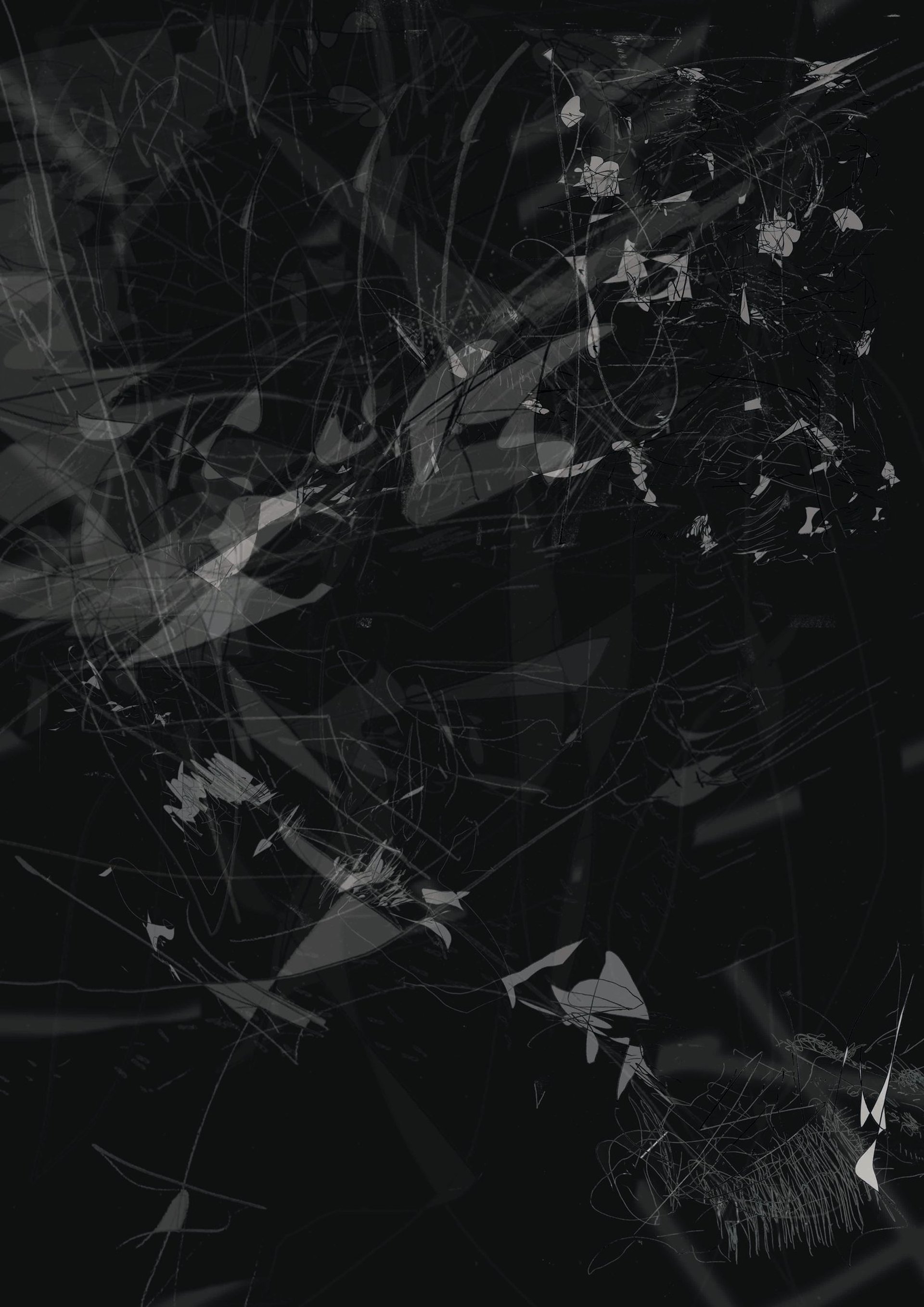 "Liebesspiel zwischen Ruhe und Zorn" (2023) ist eine Zeichnung aus Graphit und Pigment und hat eine Größe von circa 77,5 x 62,5 x 4 cm. Das Besondere an dieser Arbeit ist das ruhig ausgearbeitete Zentrum im Kontrast zur selbstbewussten Geste.